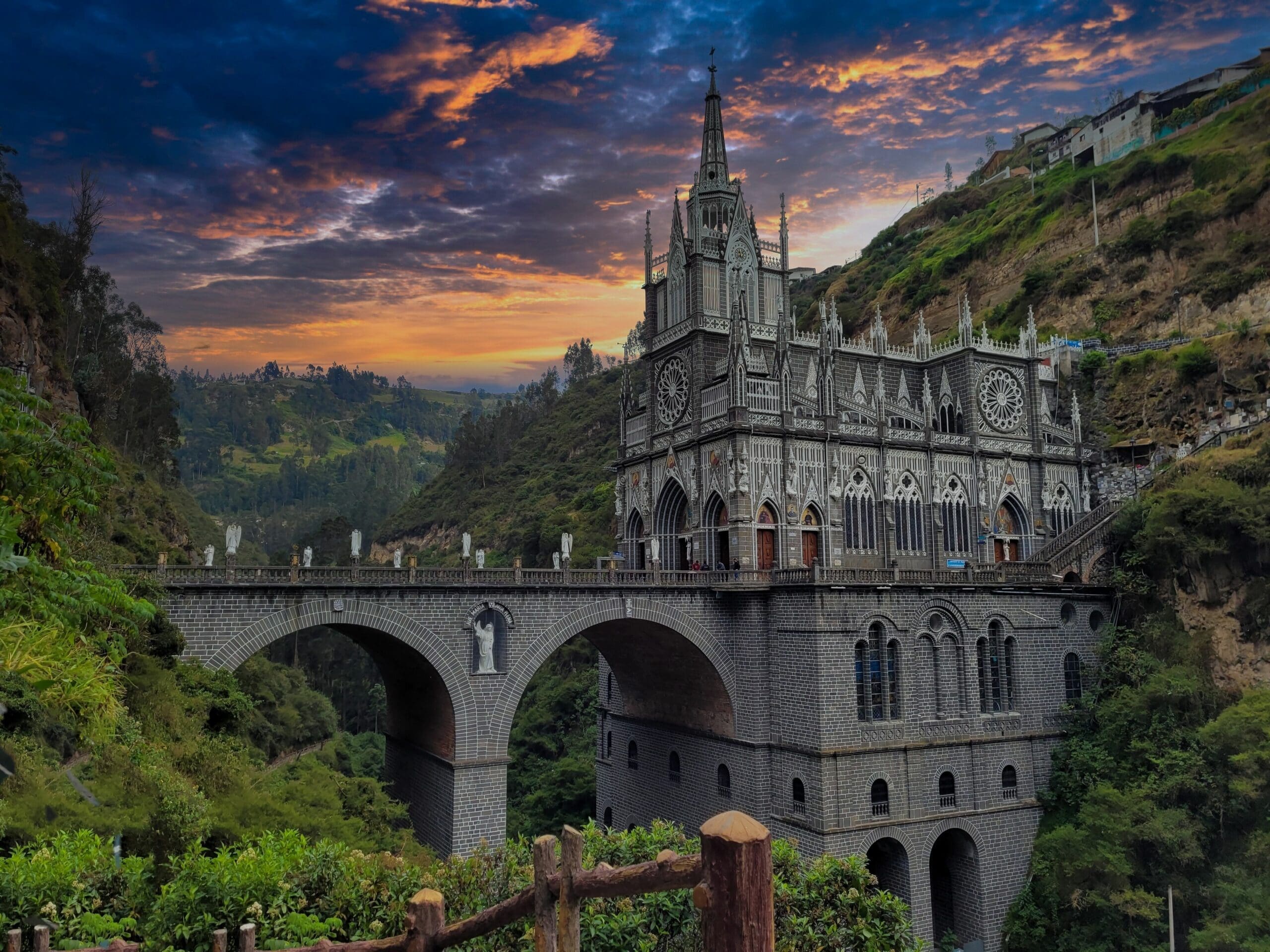 Today involves a trip to the Sanctuary of Las Lajas in Colombia, a church famed for its dramatic architecture over a canyon and a site of Marian apparitions. Then, we explore the creatively sculpted Cemetery of Tulcán. Overnight in Ibarra