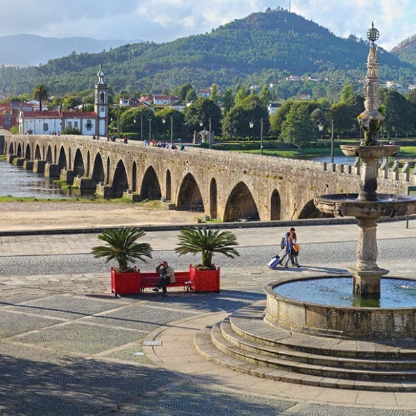 We rise early this morning and depart by motorcoach to Vitorino dos Piães, a quiet village nestled among the vineyards of northern Portugal, where we set out on foot along the Camino Português, the Portuguese route of the ancient pilgrim road to Santiago de Compostela. Guided by the iconic yellow arrows and scallop shell markers that have directed pilgrims for centuries, our walk of approximately 12 kilometers (7.5 miles) takes us through quiet countryside chapels, rolling vineyards, and ancient stone paths as we make our way north into Ponte de Lima, Portugal’s oldest municipality, first chartered in 1125. At a wayside chapel along the route, we pause to celebrate Mass together, joining our prayer to the countless pilgrims who have walked this same road for centuries. For those who prefer not to walk, the day may be spent at leisure in Porto or with time to explore Ponte de Lima. Upon arrival, the group gathers at the medieval Roman bridge spanning the Lima River before enjoying free time to explore the town’s historic center, gardens, and riverfront. Our motorcoach returns us to Porto, where we gather this evening for a farewell dinner at a local restaurant. Overnight in Porto. (B/L/D)