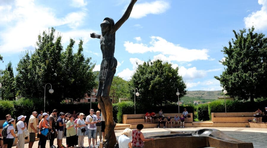 After breakfast we travel to Medjugorje, a renowned pilgrimage destination known for reported apparitions and miracles since 1981, attracting pilgrims seeking peace and renewal. Experience the beauty and peace of this simple village. During your stay in Medjugorje you will have the opportunity to share faith with thousands of pilgrims from all over the world. Your local guide will accompany you throughout the week. Here are some of the activities you will be sharing with your fellow pilgrims: Each morning at 10am you assemble at St James Church for the English-language Mass (Feast days and Sundays English Mass is at Noon). Follow the same path up Apparition Hill where the young visionaries first encountered Our Lady. Touch and pray before the statue that commemorates the spot where Mary first appeared to the visionaries.